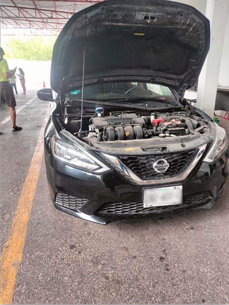 En el módulo de verificación de Registro Público Vehicular (REPUVE) se presentó un ciudadano con un vehículo Nissan Versa con placas apócrifas de Campeche. También su tarjeta de circulación era falsa por lo que fue detenido y puesto a disposición de la FGECAM.