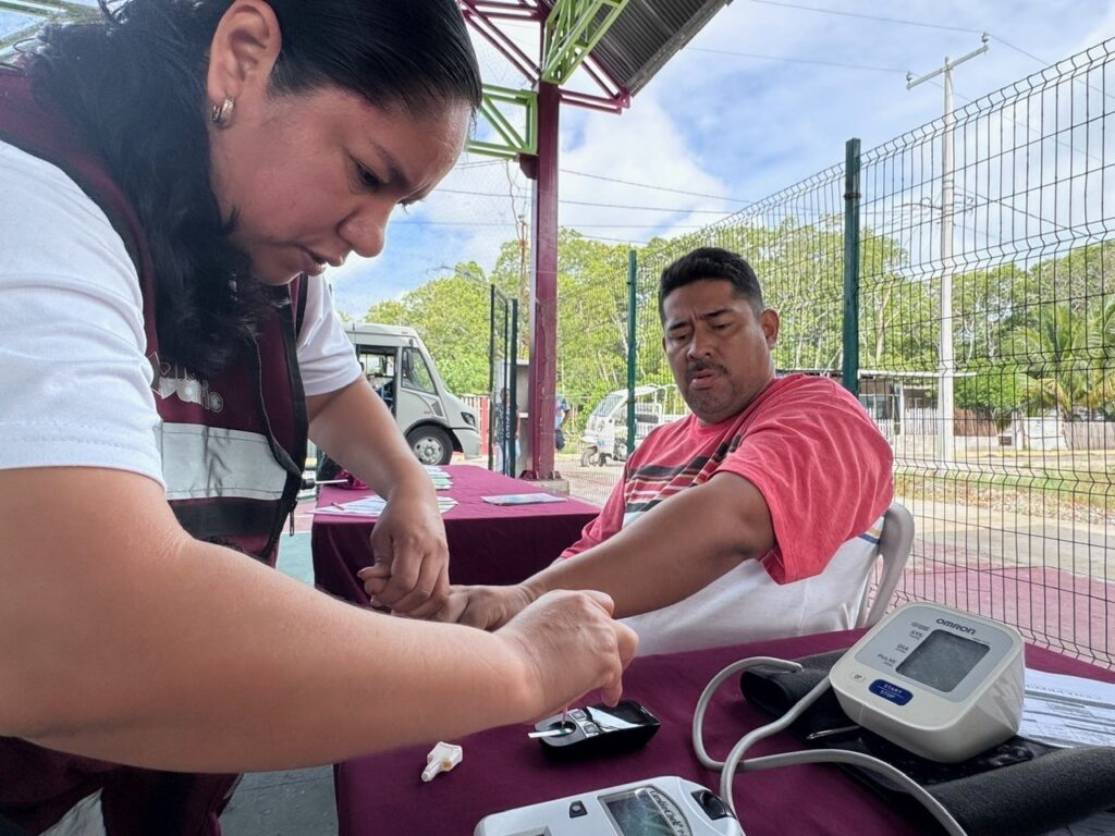 Salud en tu Barrio llegó a la localidad de Nuevo Campechito en la Península de Atasta en Carmen, para beneficiar a los pobladores con acciones de consulta médica, toma de muestras de Papanicolau y VPH, detecciones de Infecciones de Transmisión Sexual, VIH, diabetes, hipertensión, toma de peso y talla, así como entrega de preservativos y sobres de Vida Suero Oral.