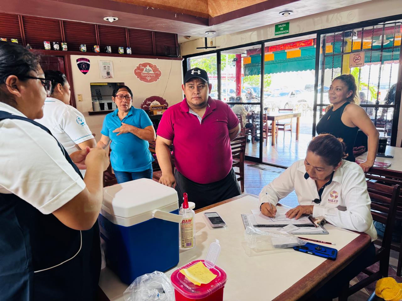 _…Personal del Distrito de Salud para el Bienestar No. 3, visita restaurantes y hoteles para vacunar al personal de primer contacto._