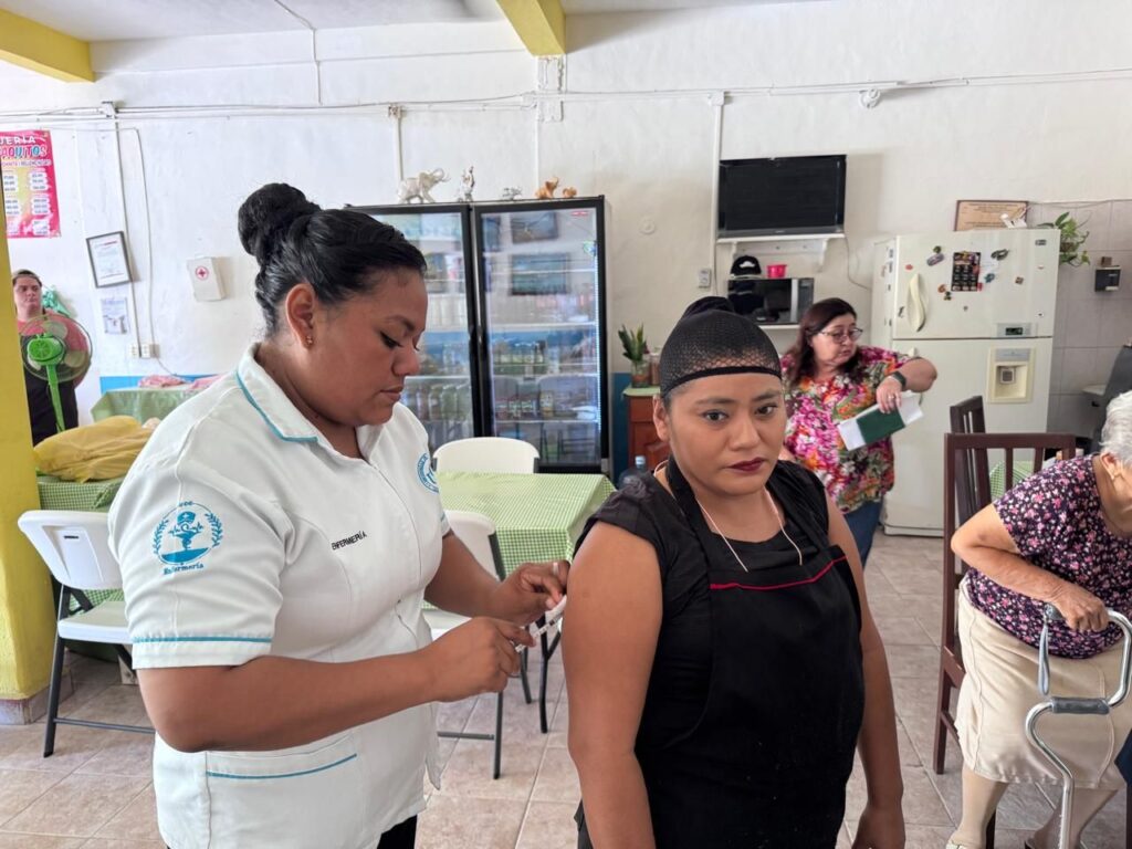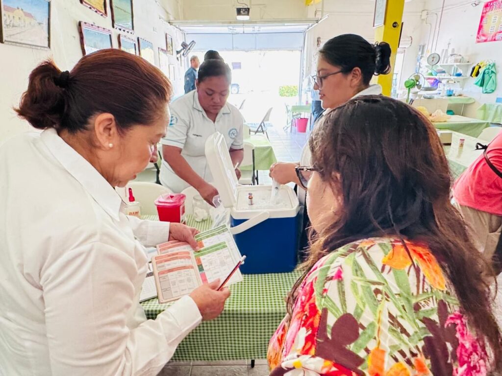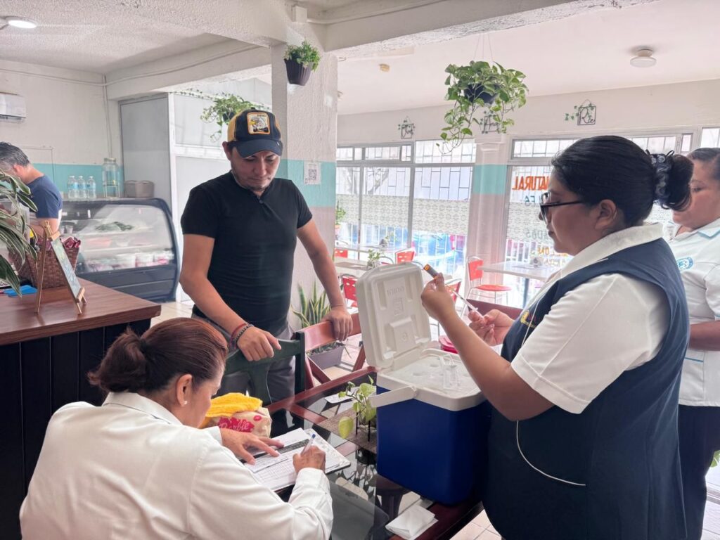 Las acciones de protección a la población mediante vacunación se mantienen activos en el municipio de Carmen, el personal del Distrito de Salud para el Bienestar No. 3, realizó acciones de inmunización a personal de restaurantes de la isla, mediante el biológico que protege contra el Sarampión, Difteria y Tos ferina.