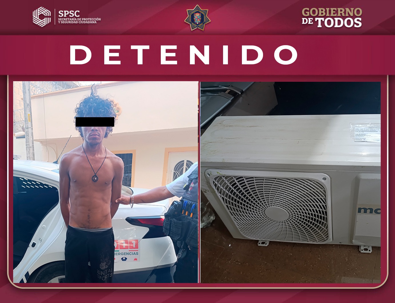 La intervención se llevó a cabo tras recibir el llamado de un ciudadano que solicitó apoyo, señalando que una persona había sustraído un compresor de aire acondicionado del interior de un domicilio. Al llegar al lugar, los oficiales fueron informados por las víctimas, quienes identificaron plenamente al sujeto como el responsable del robo.
