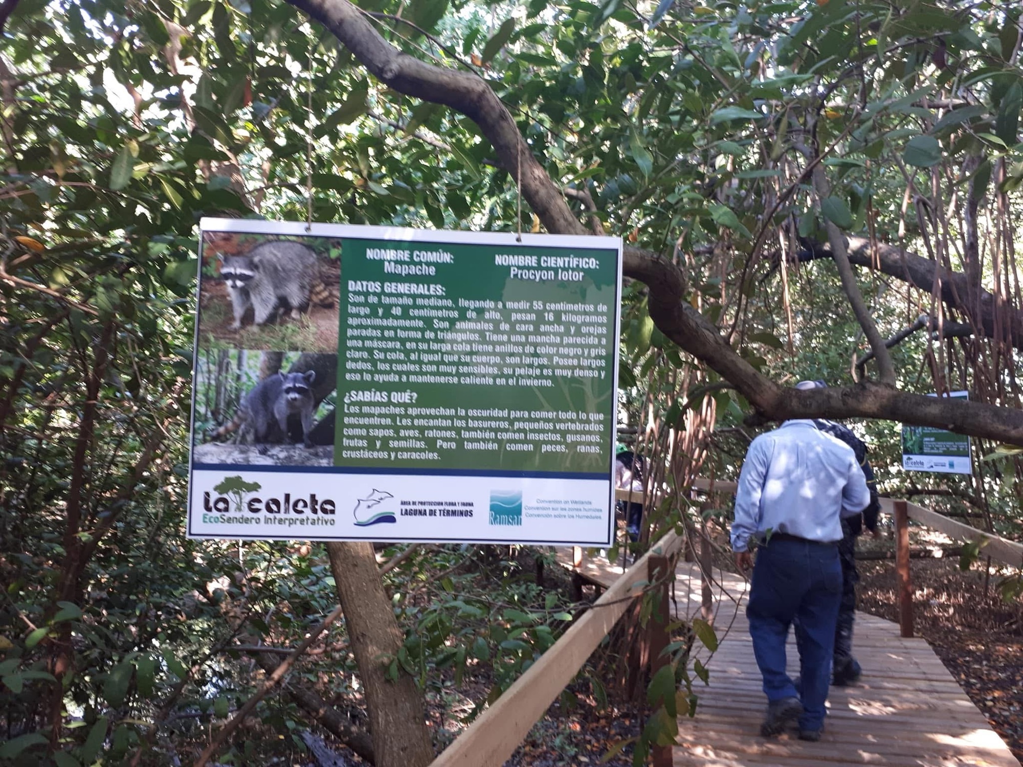 Este sendero, ubicado dentro del Área de Protección de Flora y Fauna “Laguna de Términos”, junto al arroyo La Caleta, es un proyecto de educación ambiental y de fomento a la conservación del ecosistema de manglar. Sin embargo, en la actualidad presenta signos de severo abandono, deterioro de infraestructura y falta de mantenimiento.