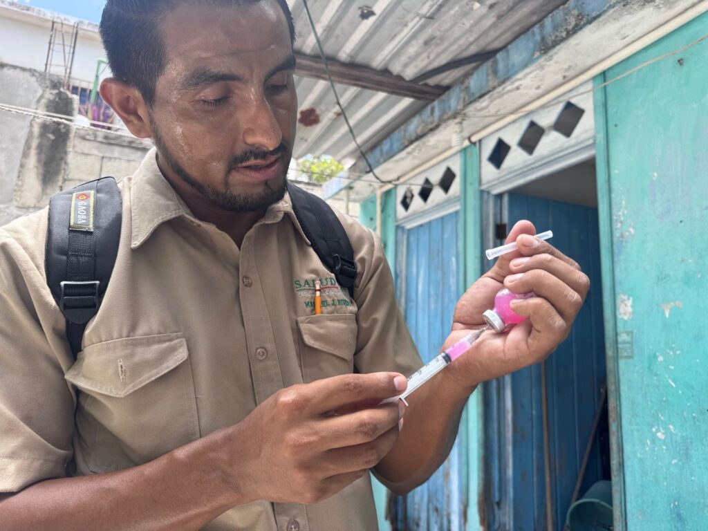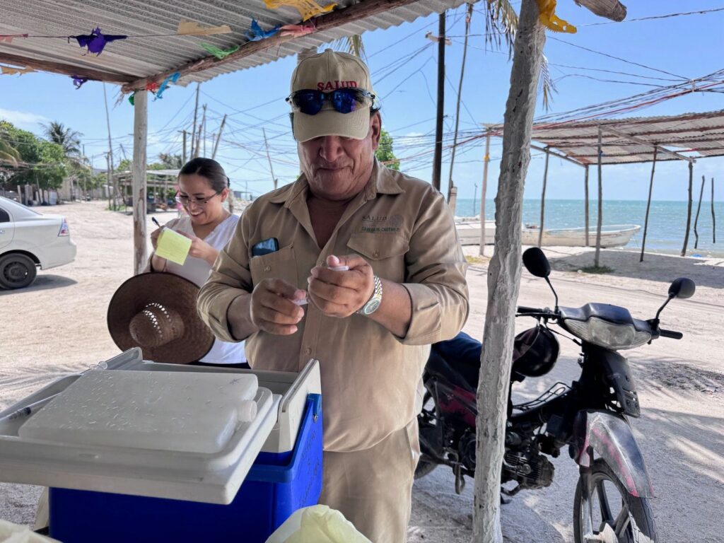 A través del Distrito de Salud para el Bienestar No. 3. En Ciudad del Carmen, se llevó a cabo una jornada intensiva de vacunación antirrábica casa por casa en las colonias Manigua, Arroyo de los Franceses, Caracol y Tecolutla, con el fin de proteger a perros y gatos contra esta enfermedad.