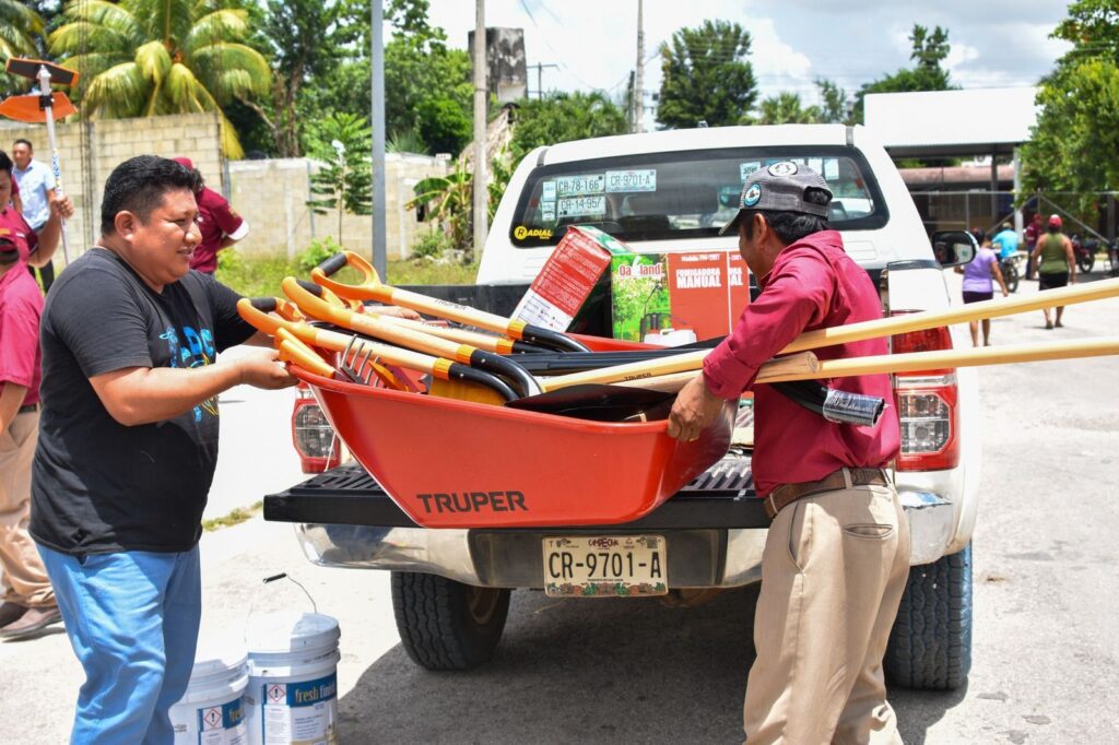 Por parte del proyecto Bienestar Social, cada kit entregado incluyó herramientas y materiales para el mantenimiento de los espacios públicos, entre ellos: desbrozadora, carretilla, palas, picos, rastrillos, guantes, machetes y pinturas. Las comunidades beneficiadas fueron: Ukum, Pachuitz, Xmejía, Xcanhá, Xmabén, Chun Ek, Chanchen, Chunchintok, Cancabchén y Nuevo Chan Yaxché.