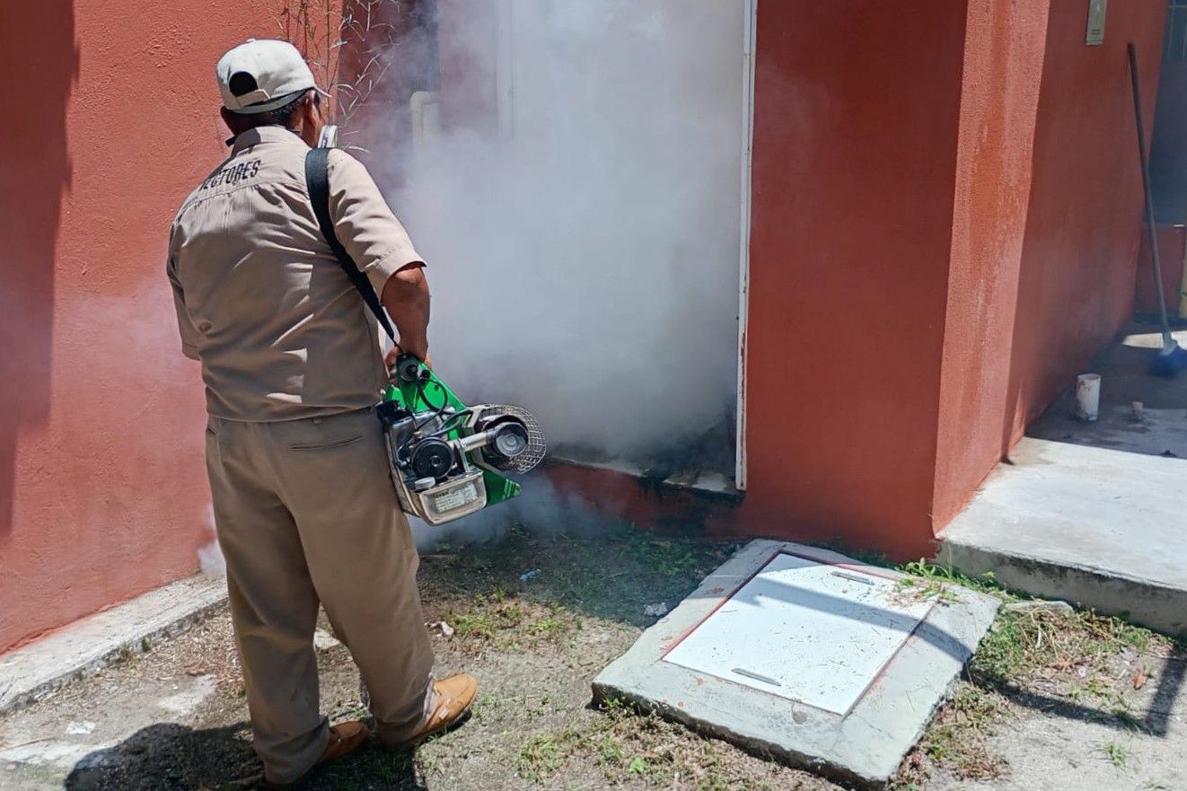 Cada semana, unidades móviles recorren colonias y comunidades para eliminar al mosco, donde acciones recientes el personal de Vectores del Distrito de Salud para el Bienestar No. 3. Recorrió sitios públicos, escuelas, llanteras y zonas acuáticas en Carmen.