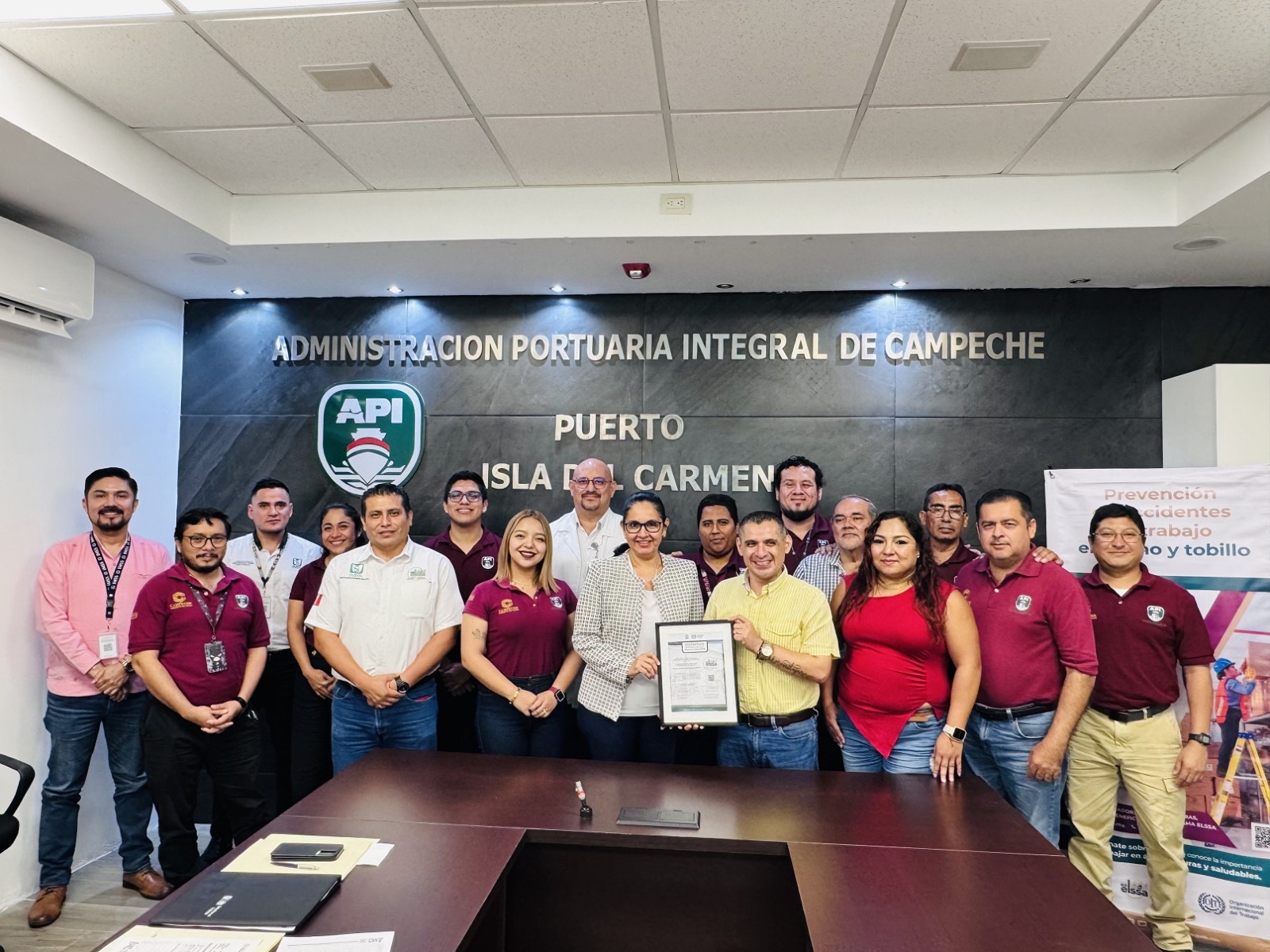 Impulso a la Salud y Seguridad en el trabajo, la gerencia en Carmen de la Administración Portuaria Integral de Campeche (APICAM) recibió el Distintivo ELSSA (Entornos Laborales Seguros y Saludables), refrendándose así el compromiso de continuar impulsado acciones que den cuidado integral al talento humano.
