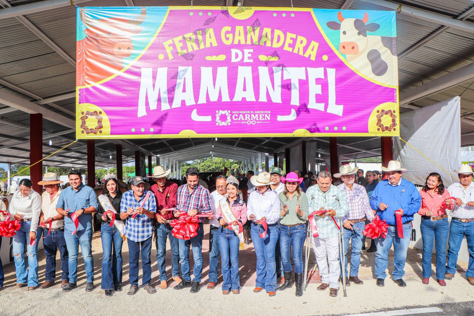 La jornada también contempló la presencia de la presidenta de la Junta Municipal de Mamantel, Guadalupe Janeth Izquierdo Morales, quien, junto al alcalde de Ciudad del Carmen, Pablo Gutiérrez Lazarus, los presidentes de la Unión Ganadera Regional, Francisco Cabrales Martínez, de la Asociación Ganadera de Mamantel, Guillermo Ortega Saldaña, y Roxana Rivera Peña, realizaron el corte del listón inaugural que dio paso formal a la Expoferia Mamantel 2025.