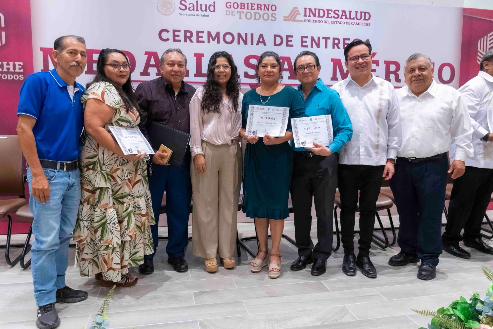 En ceremonia, destacó a los homenajeados por su valiosa contribución y compromiso al cuidado de la salud de todos: “Hoy les rendimos un merecido homenaje por su dedicación y vocación; ustedes desde sus trincheras son los que velan por el bienestar de los campechanos”, expresó.